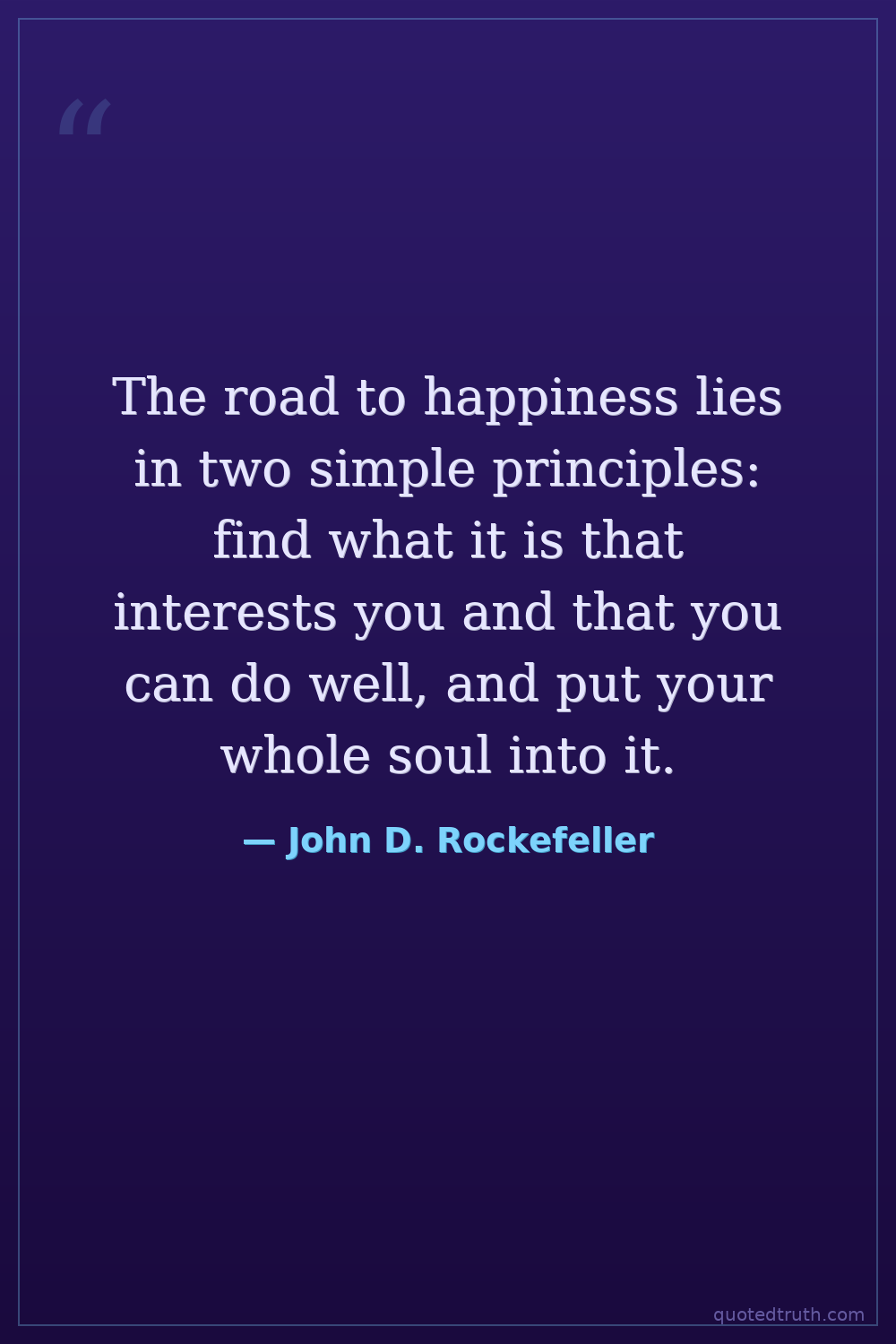 The road to happiness lies in two simple principles: find what it is that interests you and that you can do well, and put your whole soul into it.