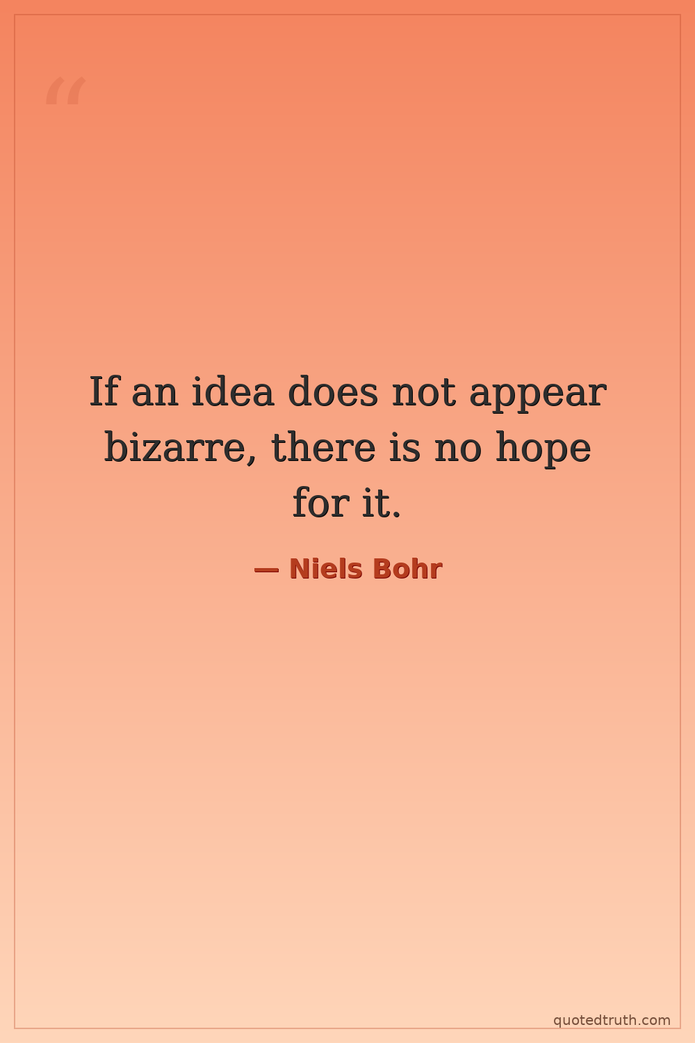 If an idea does not appear bizarre, there is no hope for it.