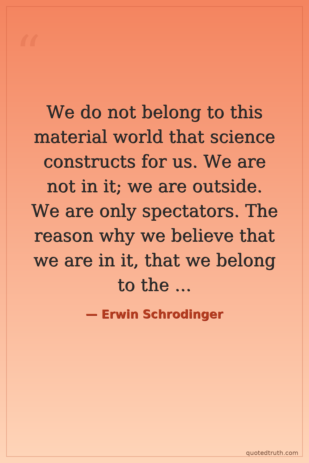 We do not belong to this material world that science constructs for us. We are not in it; we are outside. We are only spectators. The reason why we believe that we are in it, that we belong to the picture, is that our bodies are in the picture. — Erwin Schrodinger Modern Wave mechanics