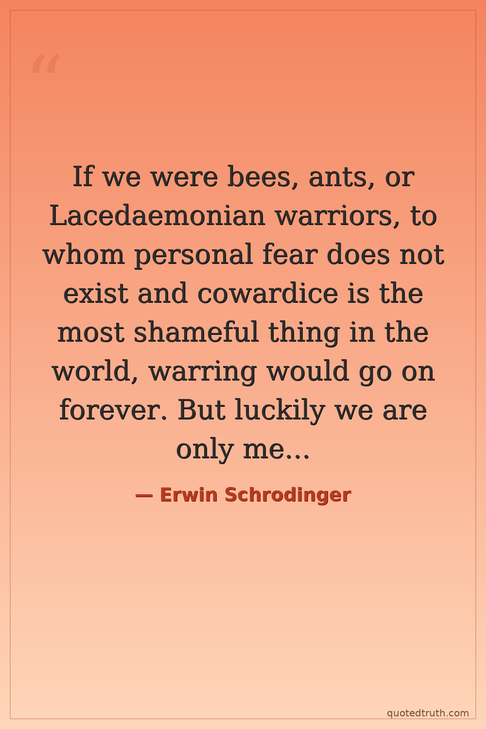 If we were bees, ants, or Lacedaemonian warriors, to whom personal fear does not exist and cowardice is the most shameful thing in the world, warring would go on forever. But luckily we are only men — and cowards.