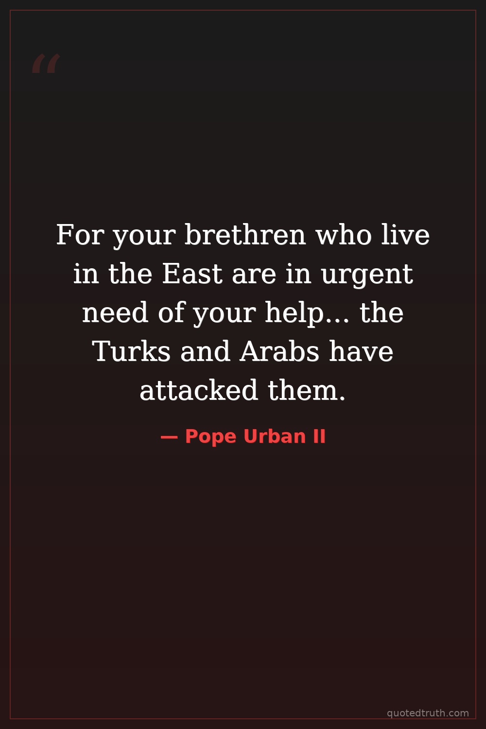 For your brethren who live in the East are in urgent need of your help... the Turks and Arabs have attacked them.