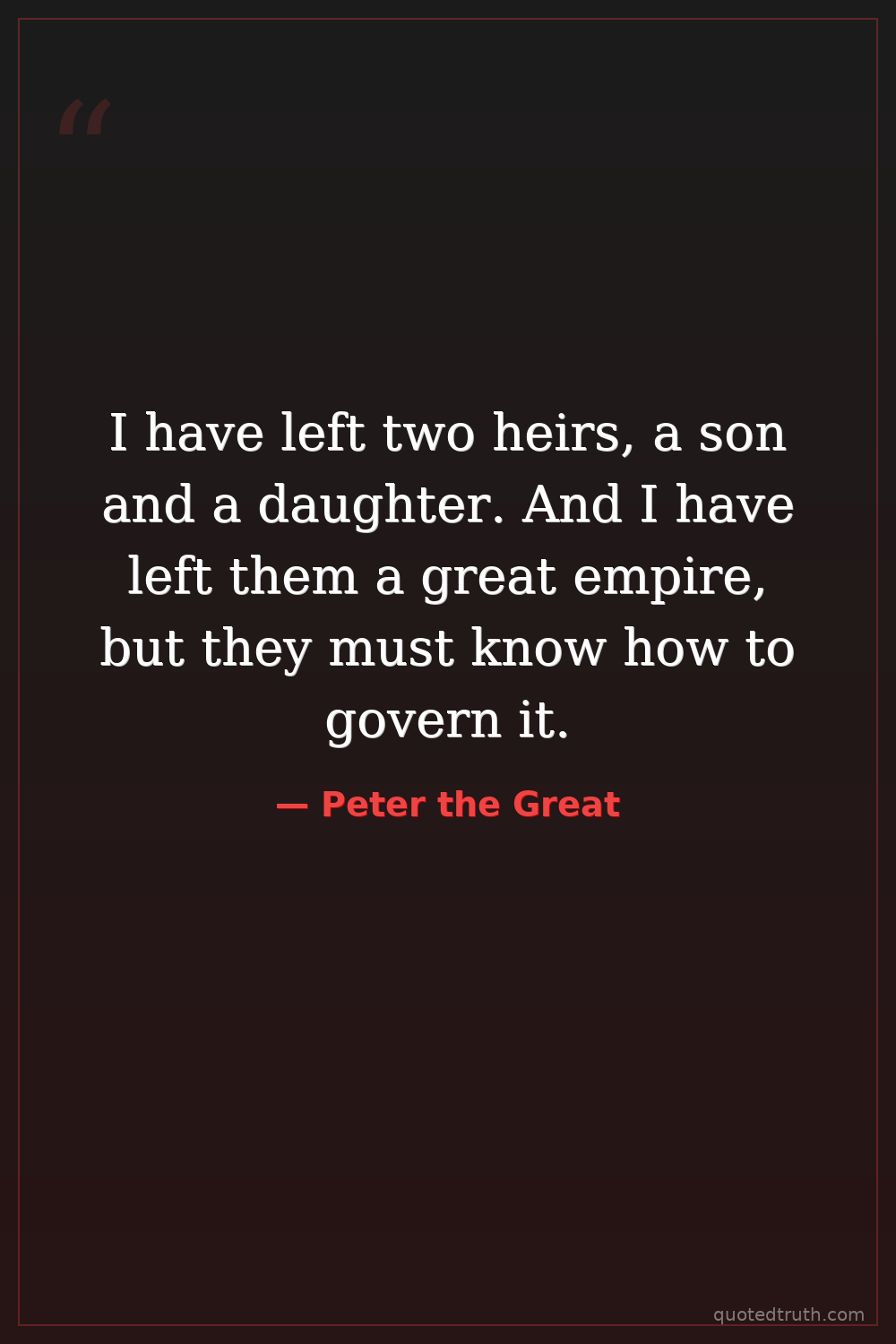 I have left two heirs, a son and a daughter. And I have left them a great empire, but they must know how to govern it.