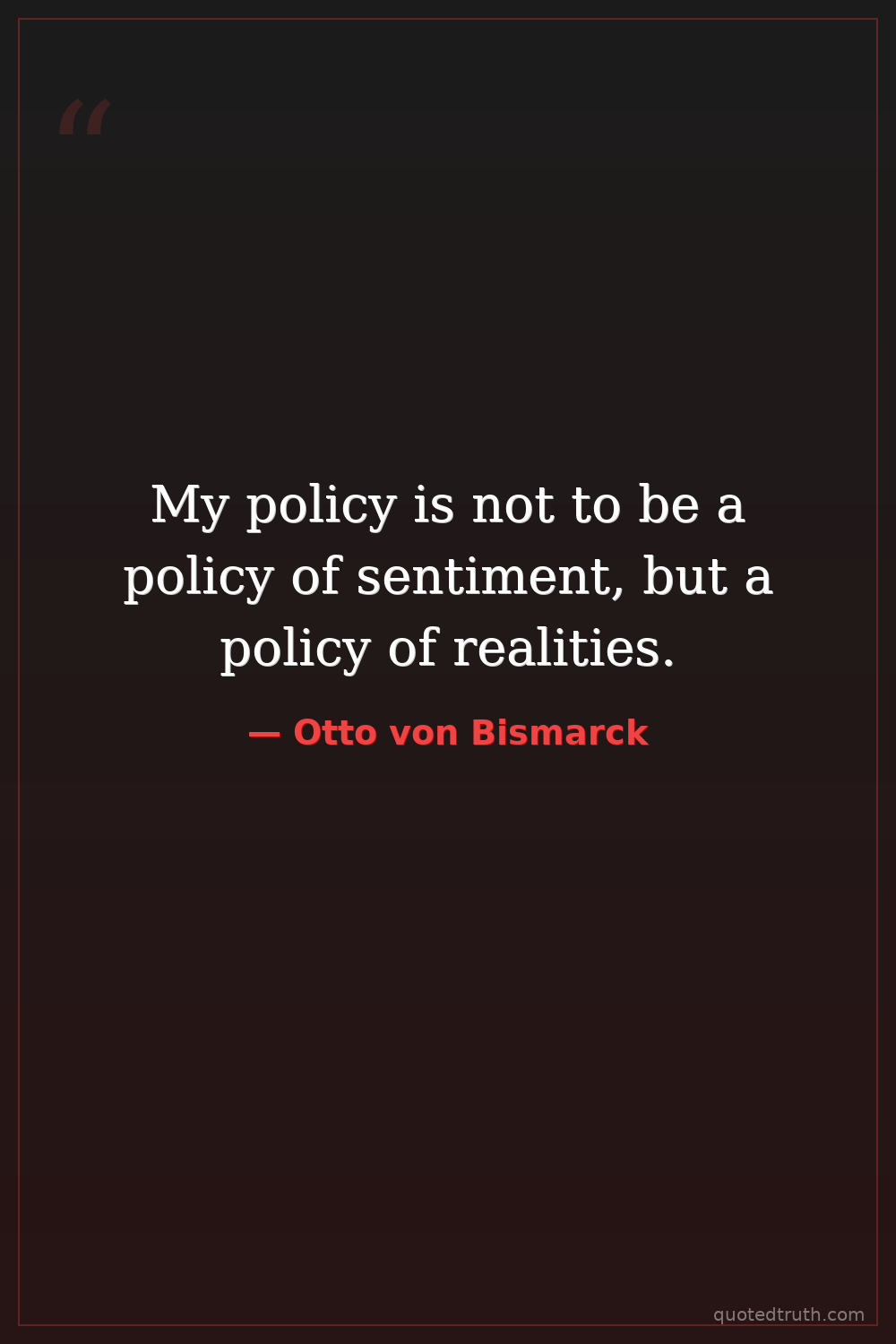 My policy is not to be a policy of sentiment, but a policy of realities.