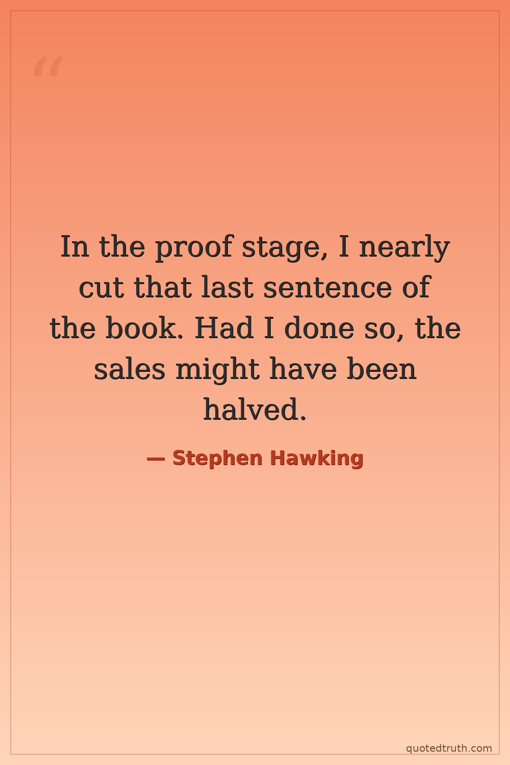 In the proof stage, I nearly cut that last sentence of the book. Had I done so, the sales might have been halved.