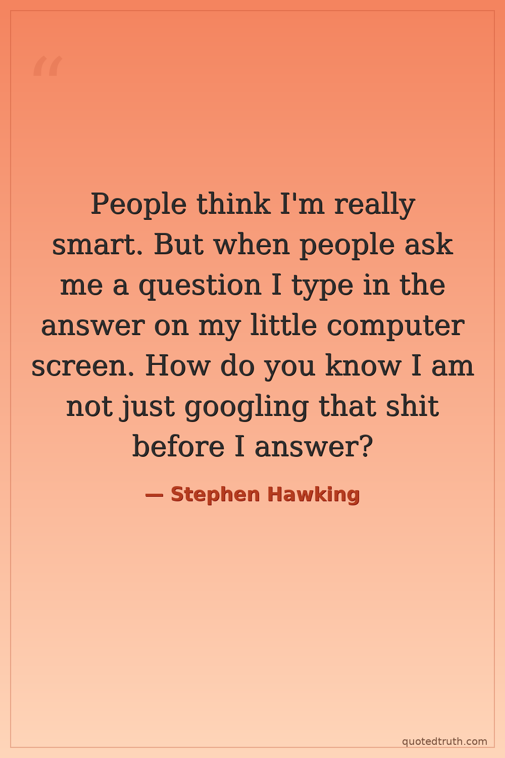 People think I'm really smart. But when people ask me a question I type in the answer on my little computer screen. How do you know I am not just googling that shit before I answer?