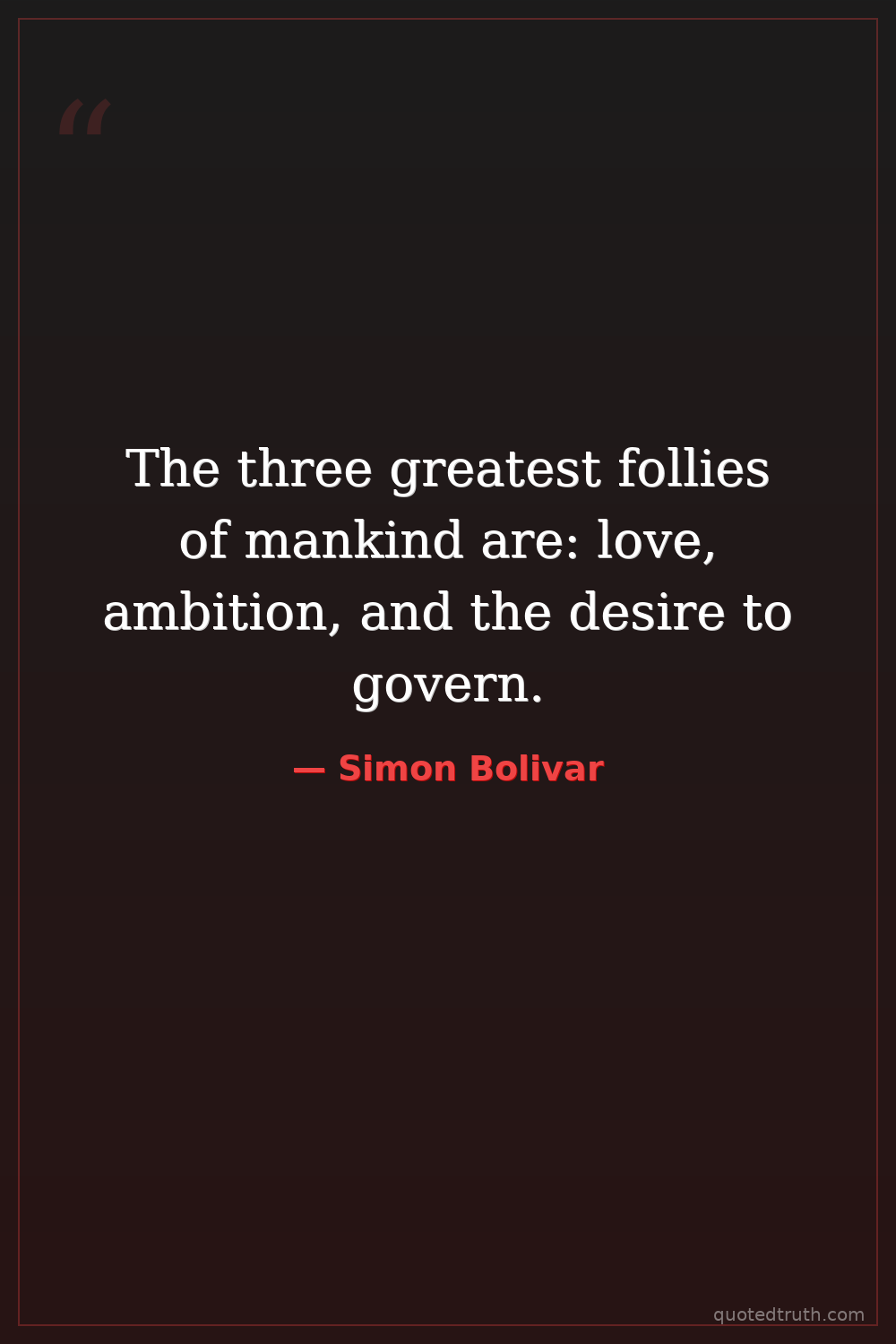 The three greatest follies of mankind are: love, ambition, and the desire to govern.