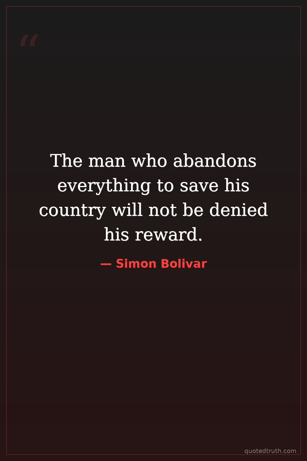 The man who abandons everything to save his country will not be denied his reward.