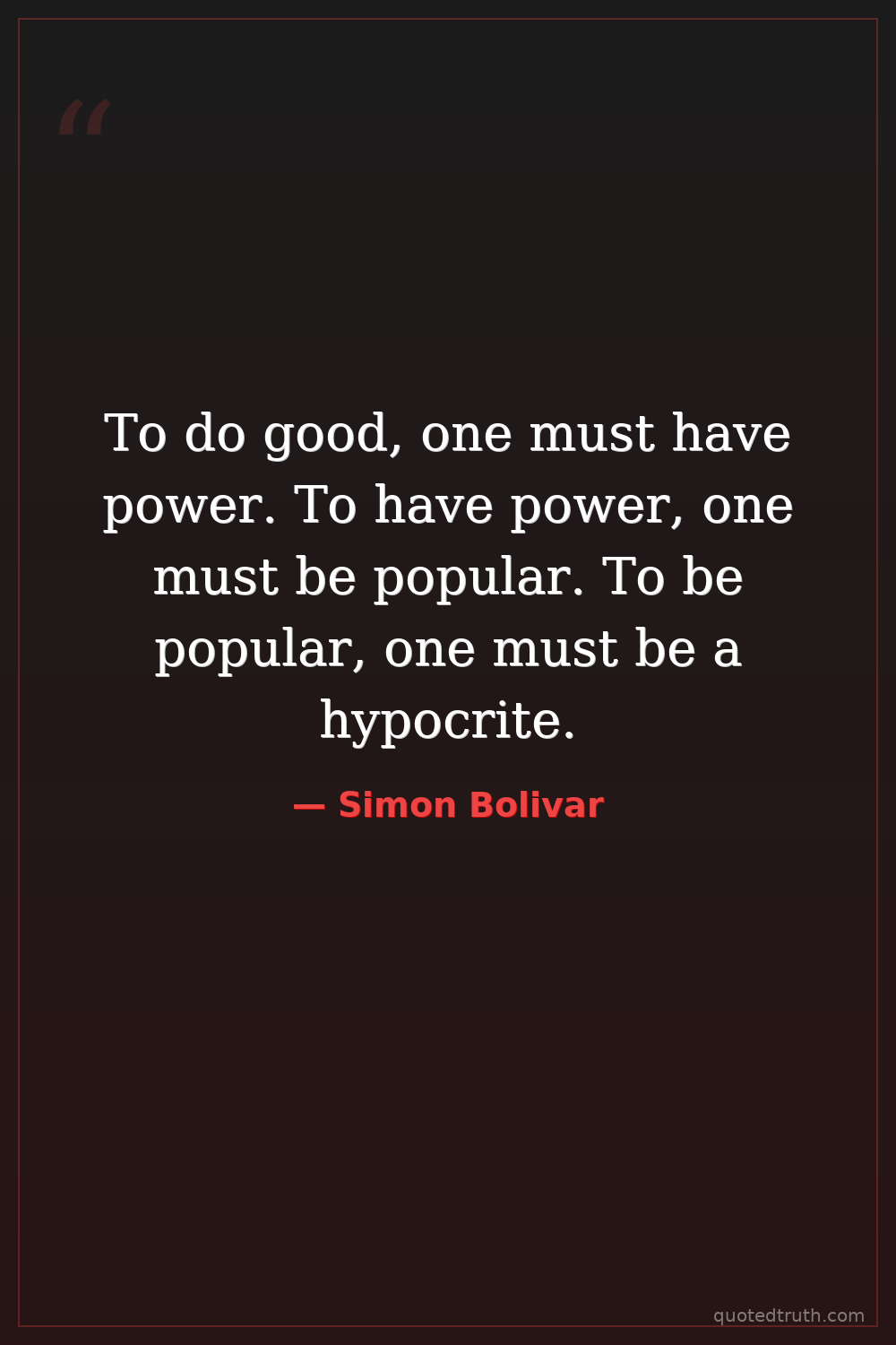 To do good, one must have power. To have power, one must be popular. To be popular, one must be a hypocrite.