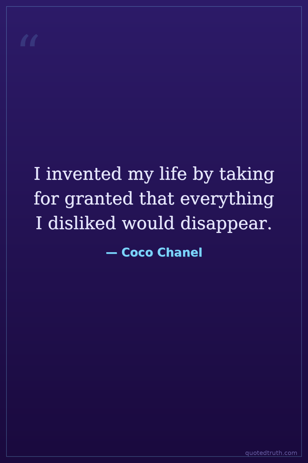 I invented my life by taking for granted that everything I disliked would disappear.