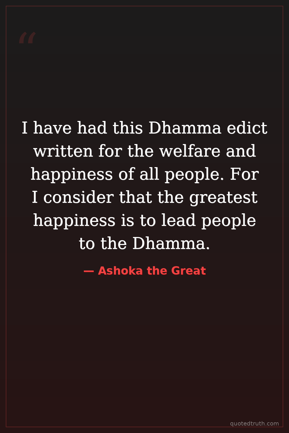 I have had this Dhamma edict written for the welfare and happiness of all people. For I consider that the greatest happiness is to lead people to the Dhamma.