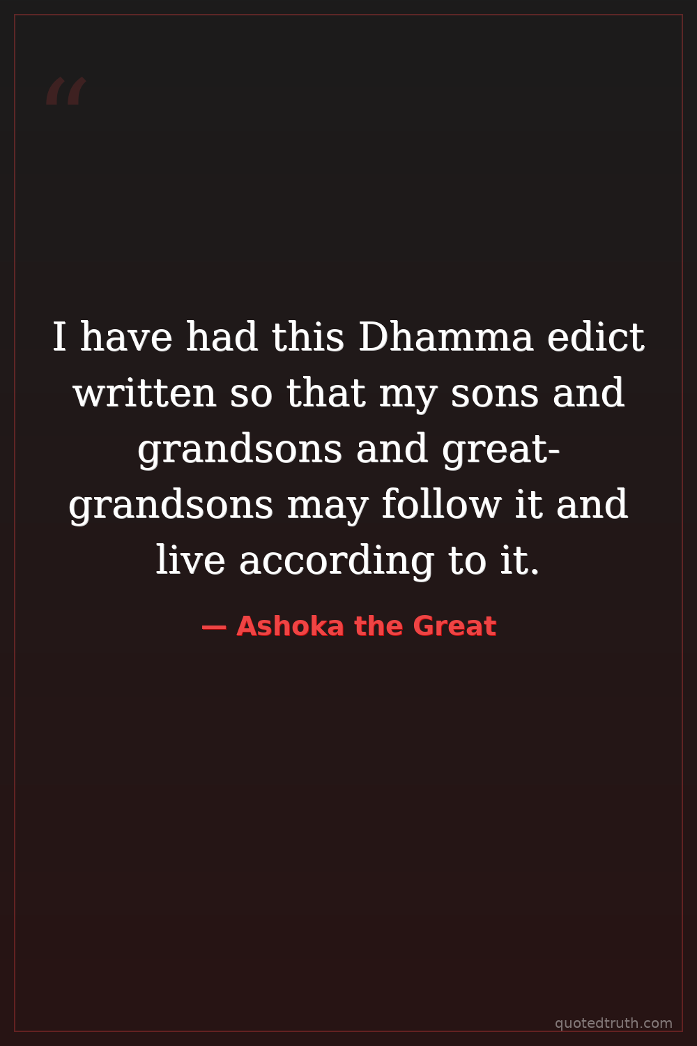 I have had this Dhamma edict written so that my sons and grandsons and great-grandsons may follow it and live according to it.
