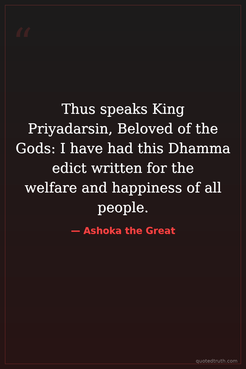Thus speaks King Priyadarsin, Beloved of the Gods: I have had this Dhamma edict written for the welfare and happiness of all people.