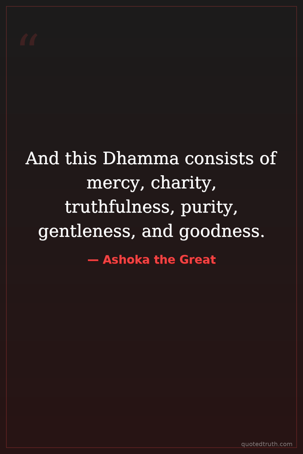 And this Dhamma consists of mercy, charity, truthfulness, purity, gentleness, and goodness.