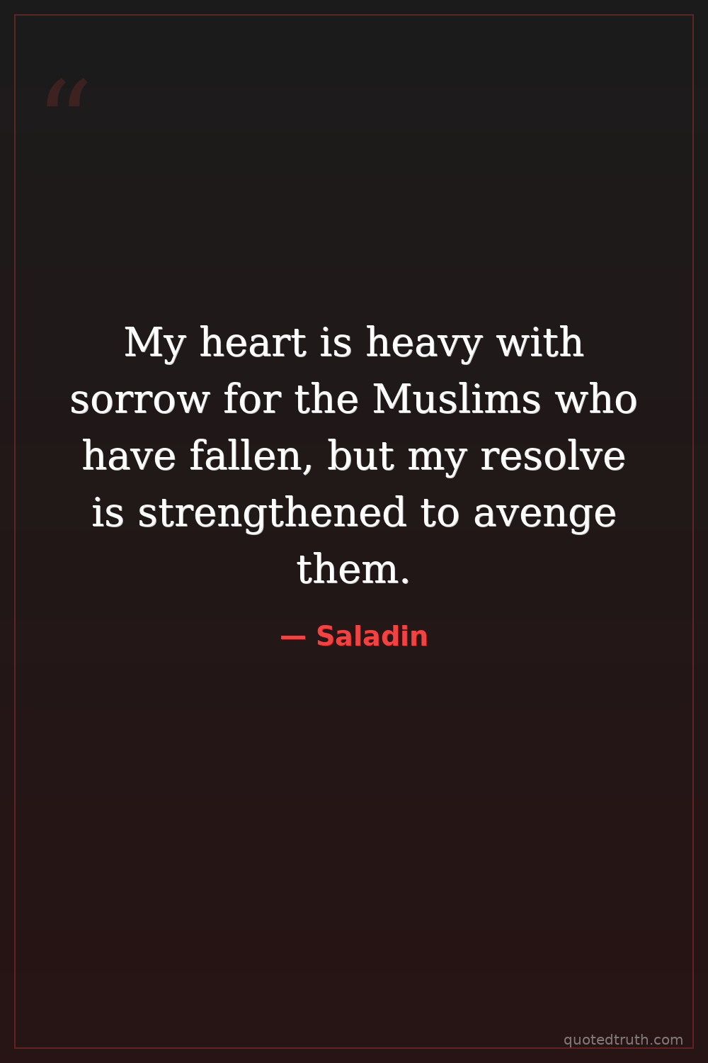 My heart is heavy with sorrow for the Muslims who have fallen, but my resolve is strengthened to avenge them.