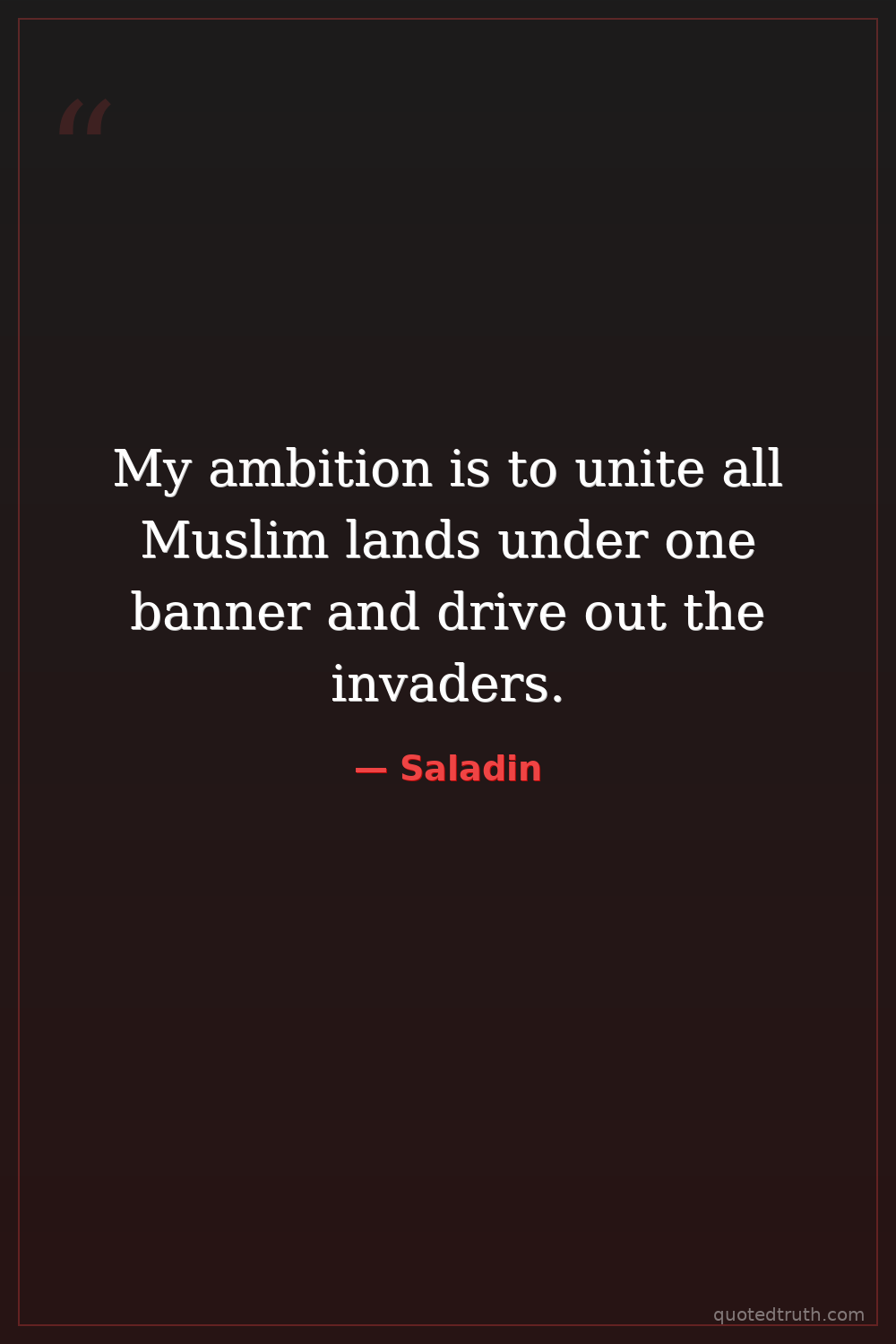My ambition is to unite all Muslim lands under one banner and drive out the invaders.
