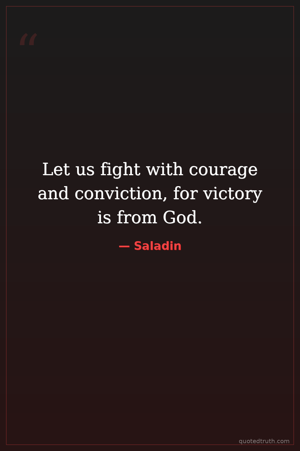 Controversial"Do not imagine that because I have taken Jerusalem, I shall rest. No, I shall not rest until I have taken all the remaining Frankish possessions, and then I will go on to conquer the West, and I will …"