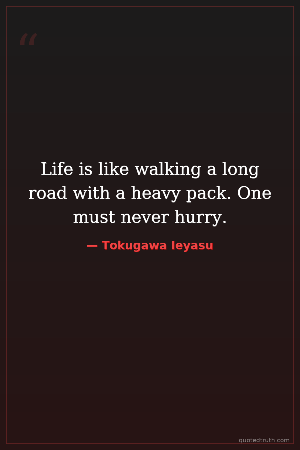 Life is like walking a long road with a heavy pack. One must never hurry.