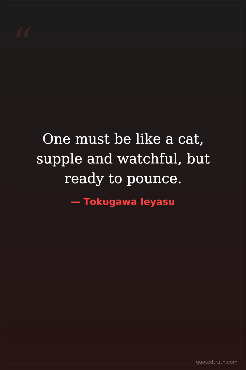 One must be like a cat, supple and watchful, but ready to pounce.