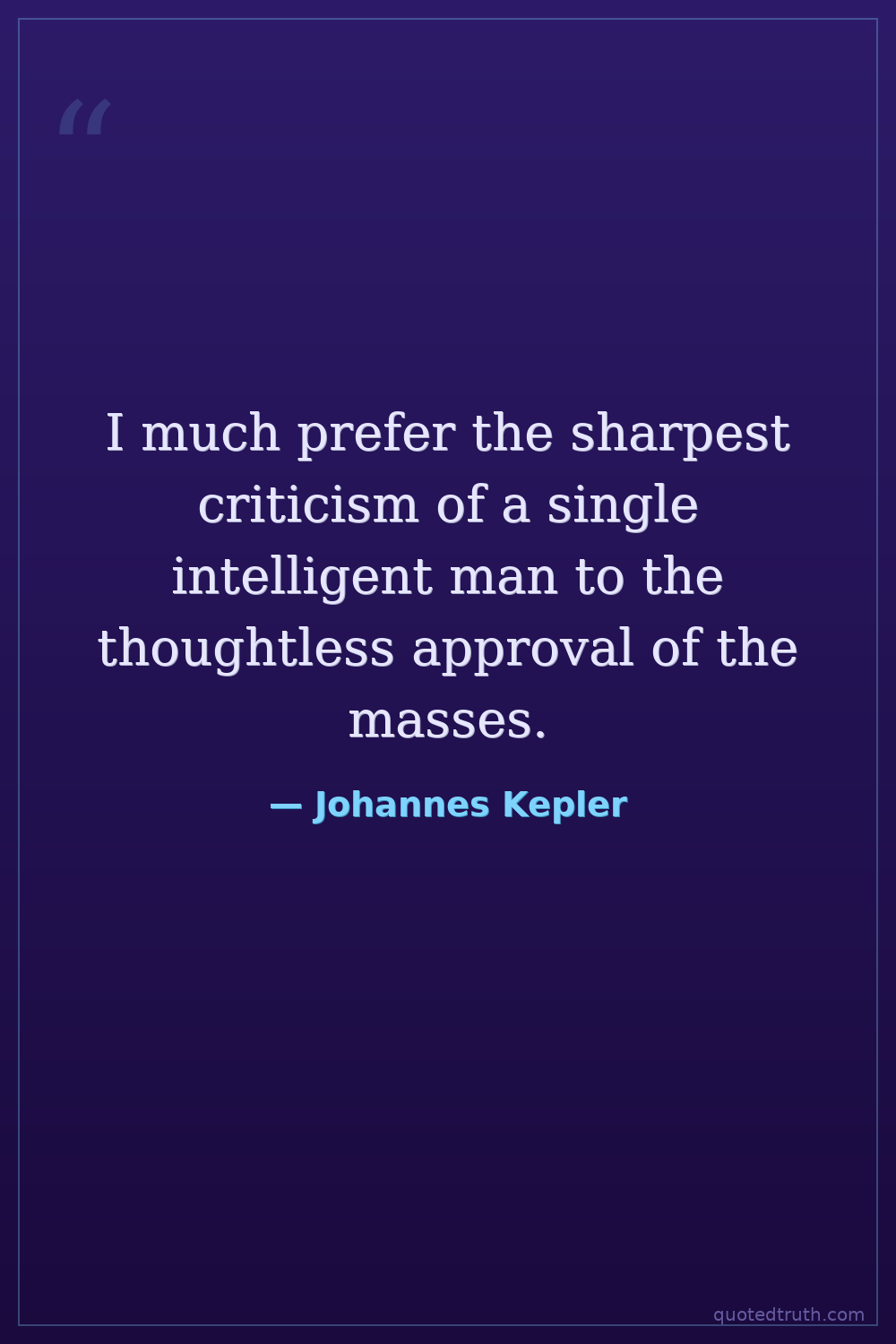 I much prefer the sharpest criticism of a single intelligent man to the thoughtless approval of the masses.