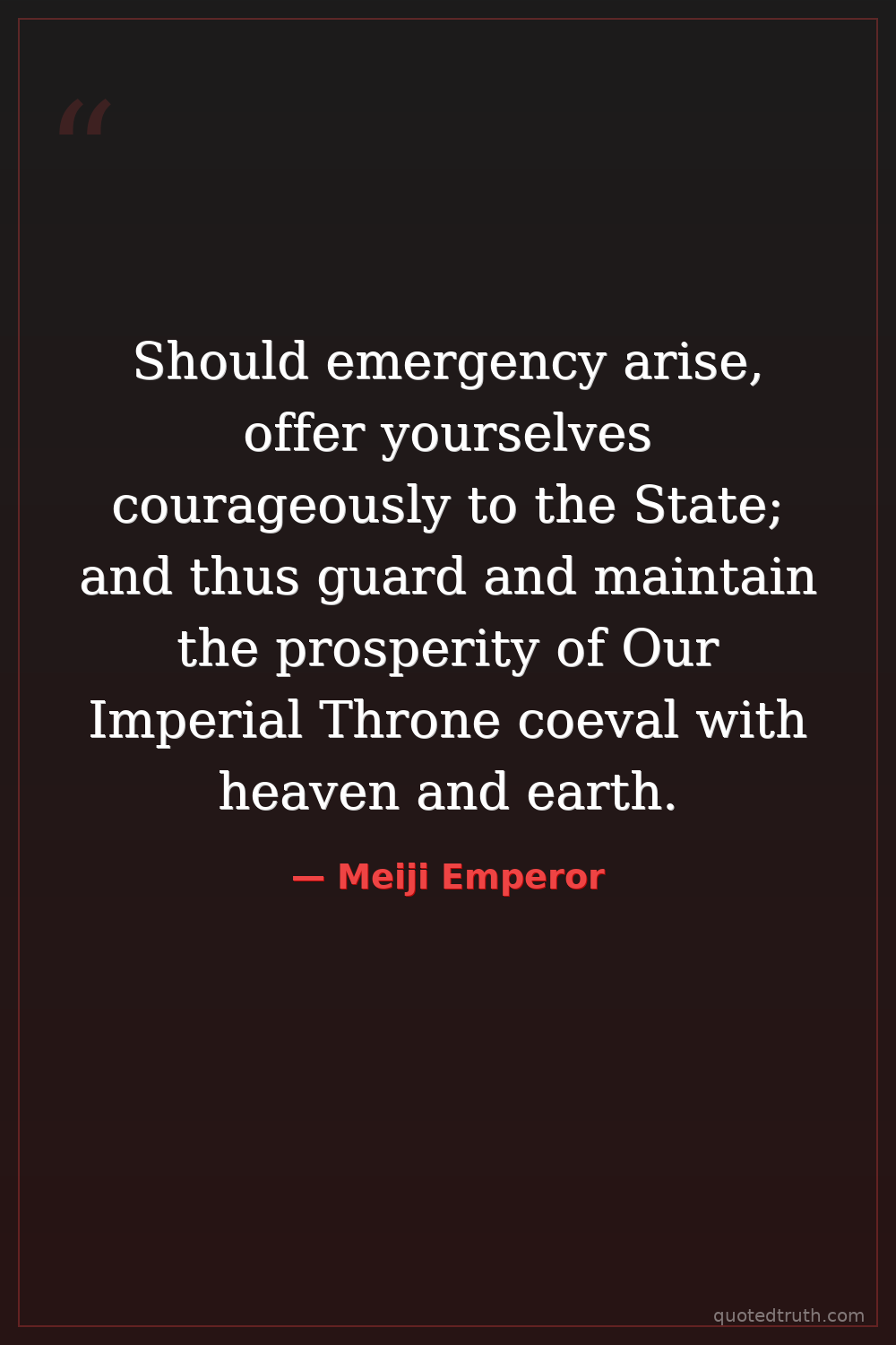 Should emergency arise, offer yourselves courageously to the State; and thus guard and maintain the prosperity of Our Imperial Throne coeval with heaven and earth.