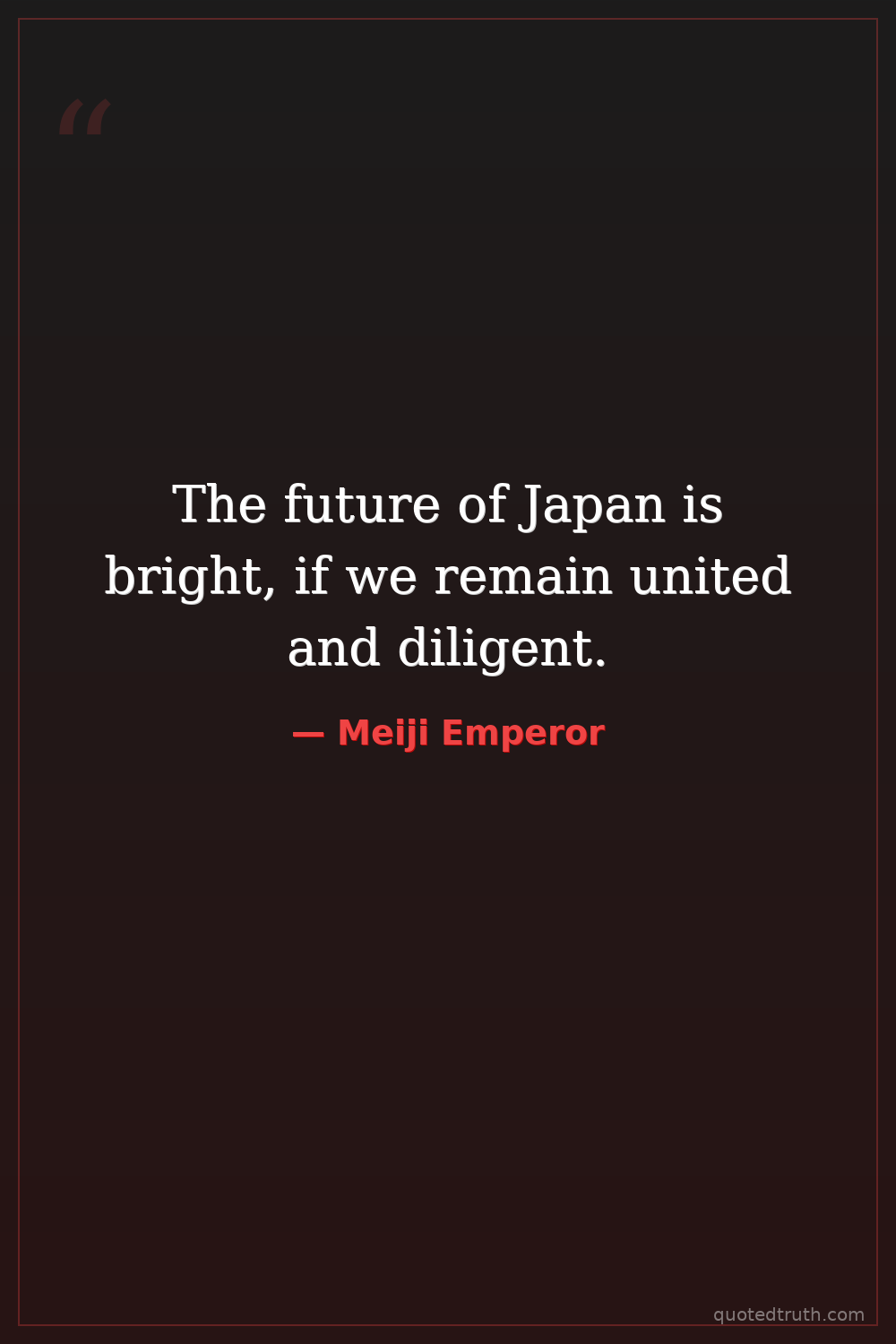 The future of Japan is bright, if we remain united and diligent.