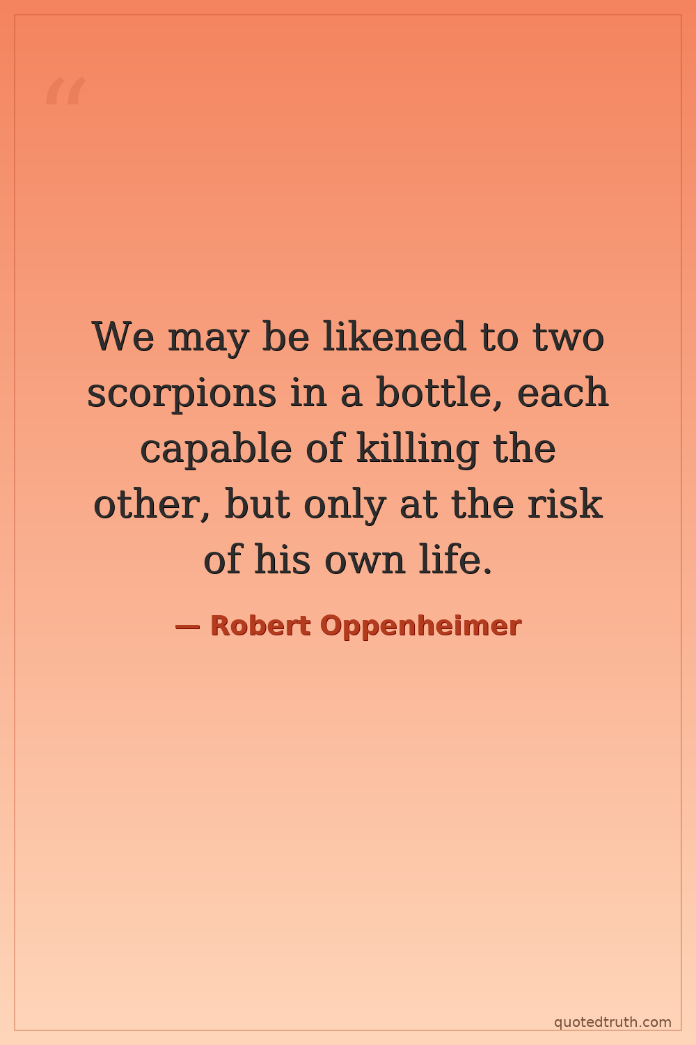 We may be likened to two scorpions in a bottle, each capable of killing the other, but only at the risk of his own life.
