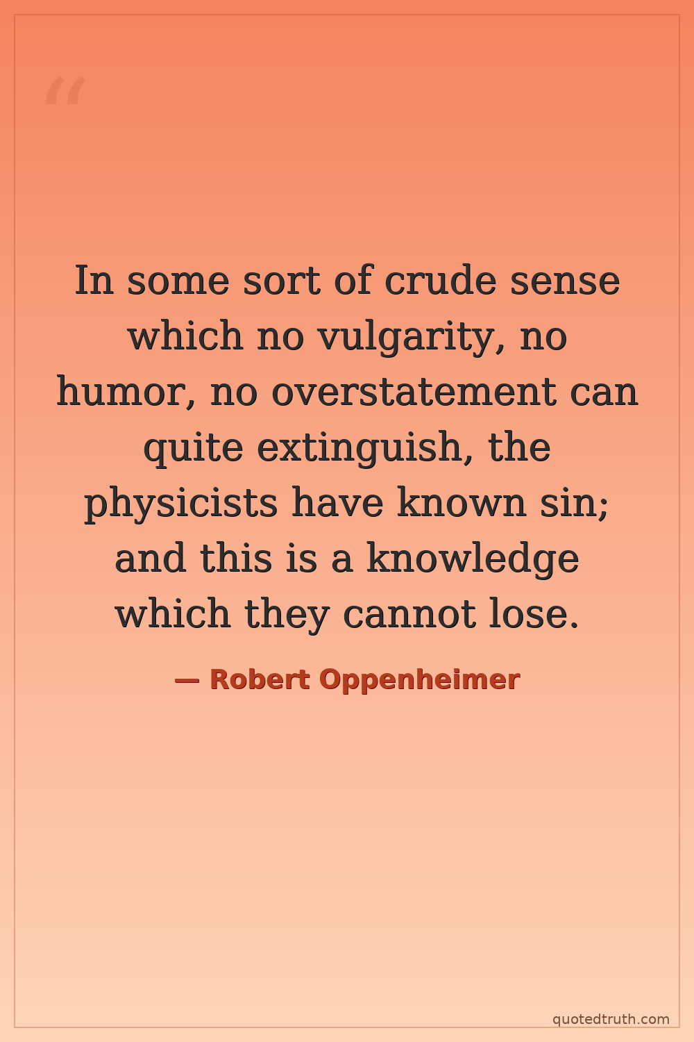 In some sort of crude sense which no vulgarity, no humor, no overstatement can quite extinguish, the physicists have known sin; and this is a knowledge which they cannot lose.