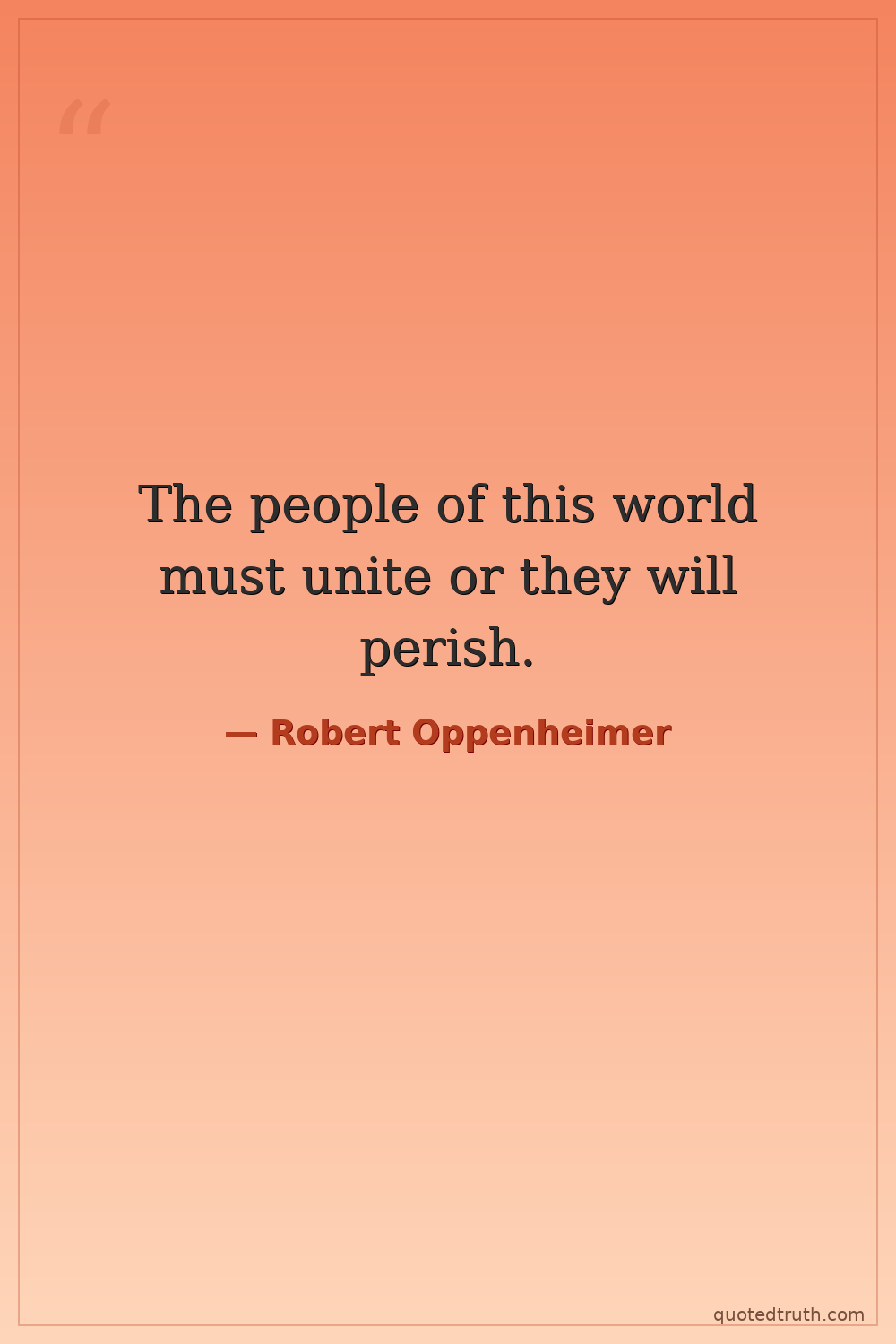 The people of this world must unite or they will perish.