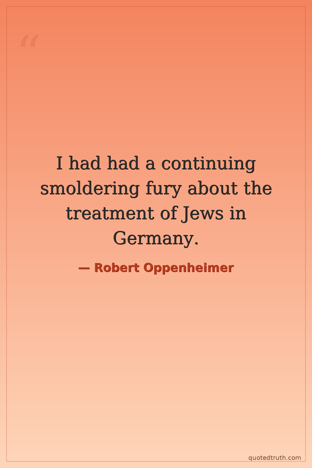 I had had a continuing smoldering fury about the treatment of Jews in Germany.