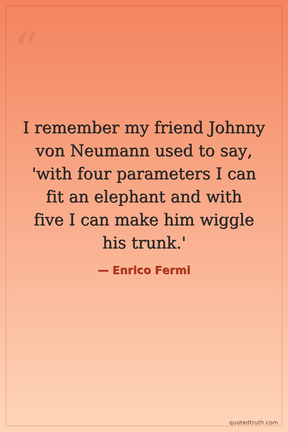 I remember my friend Johnny von Neumann used to say, 'with four parameters I can fit an elephant and with five I can make him wiggle his trunk.'