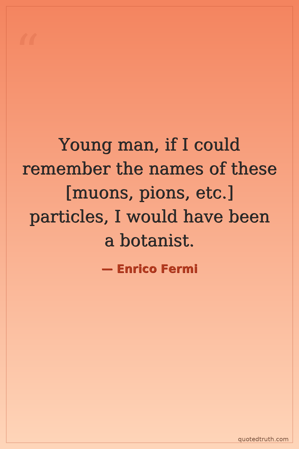 Young man, if I could remember the names of these [muons, pions, etc.] particles, I would have been a botanist.