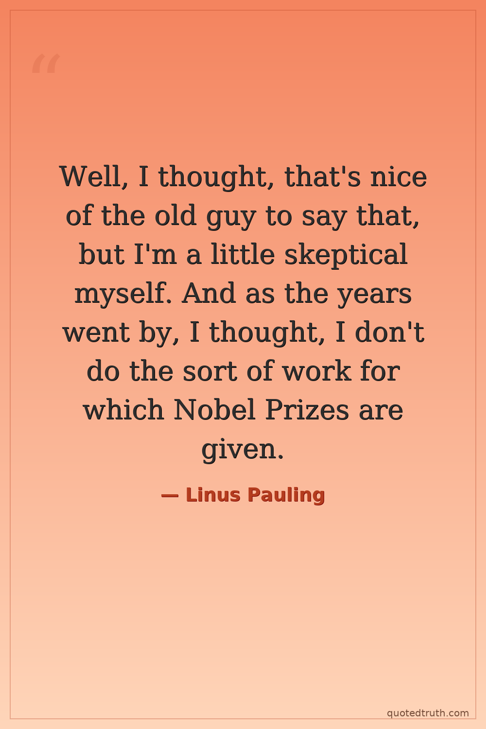 Well, I thought, that's nice of the old guy to say that, but I'm a little skeptical myself. And as the years went by, I thought, I don't do the sort of work for which Nobel Prizes are given.