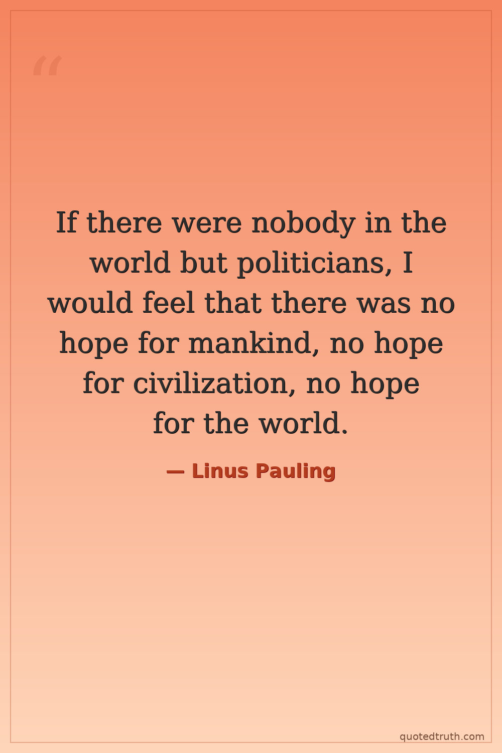 If there were nobody in the world but politicians, I would feel that there was no hope for mankind, no hope for civilization, no hope for the world.