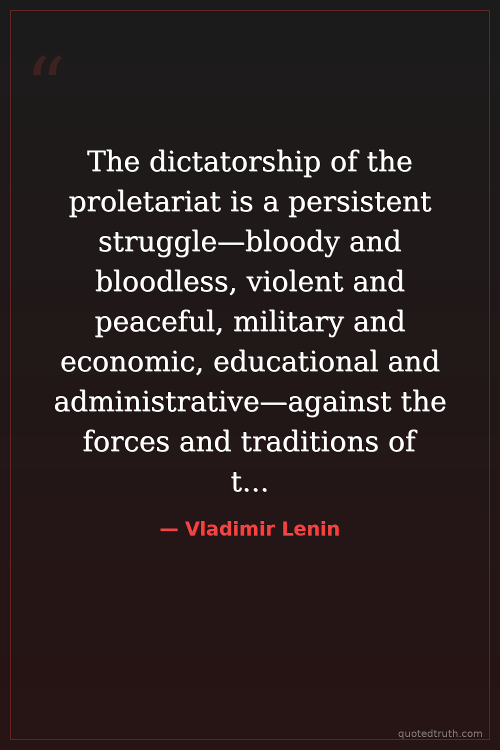 The dictatorship of the proletariat is a persistent struggle—bloody and bloodless, violent and peaceful, military and economic, educational and administrative—against the forces and traditions of the old society.
