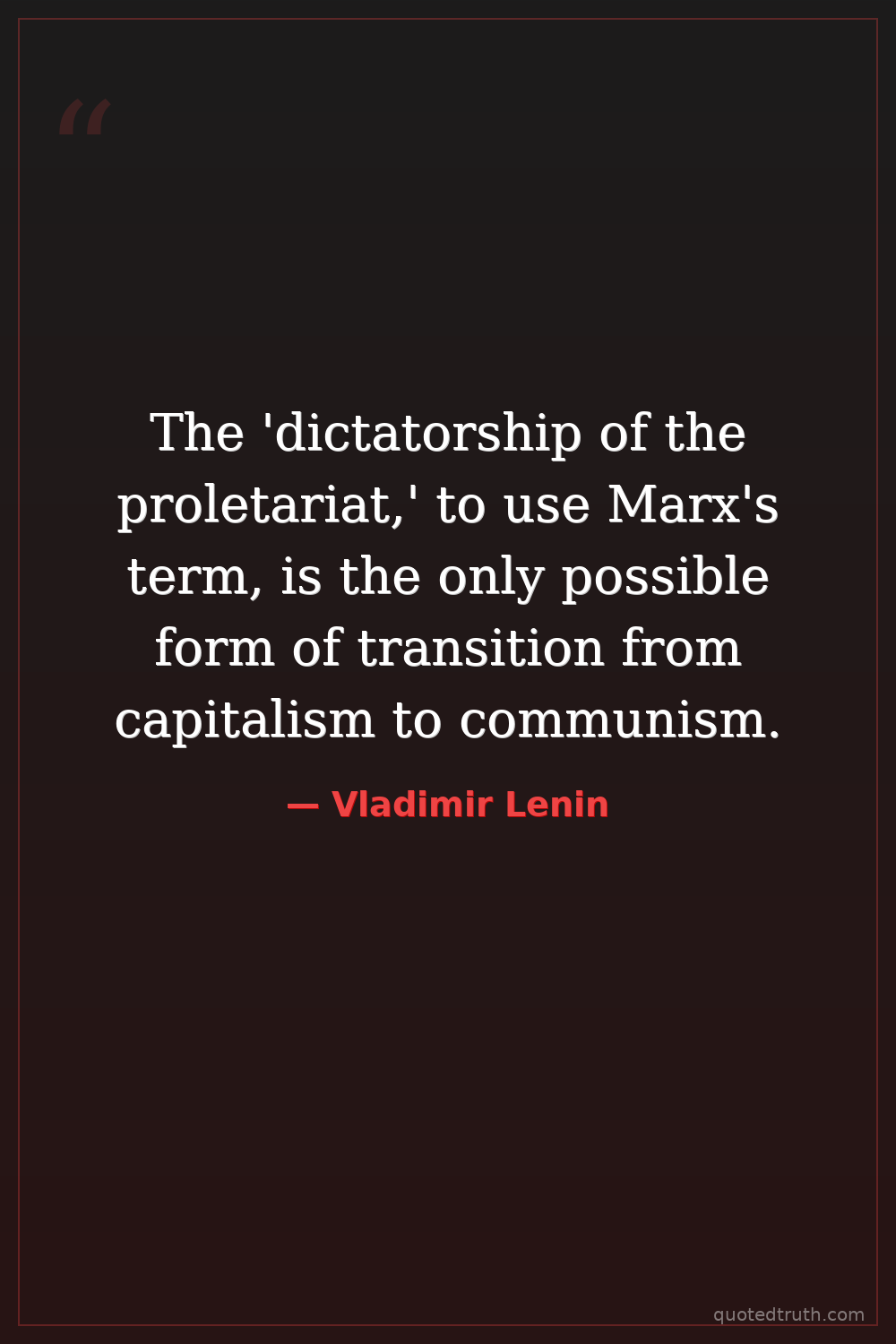 The 'dictatorship of the proletariat,' to use Marx's term, is the only possible form of transition from capitalism to communism.