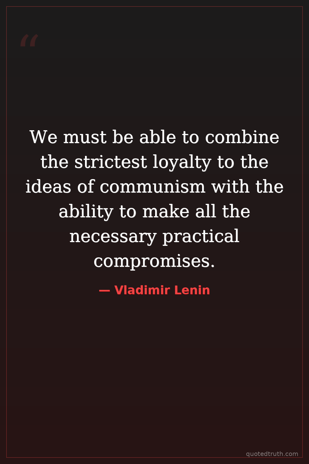 We must be able to combine the strictest loyalty to the ideas of communism with the ability to make all the necessary practical compromises.