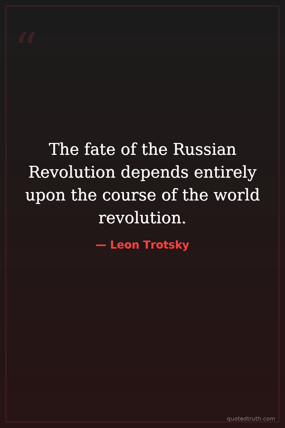 The fate of the Russian Revolution depends entirely upon the course of the world revolution.