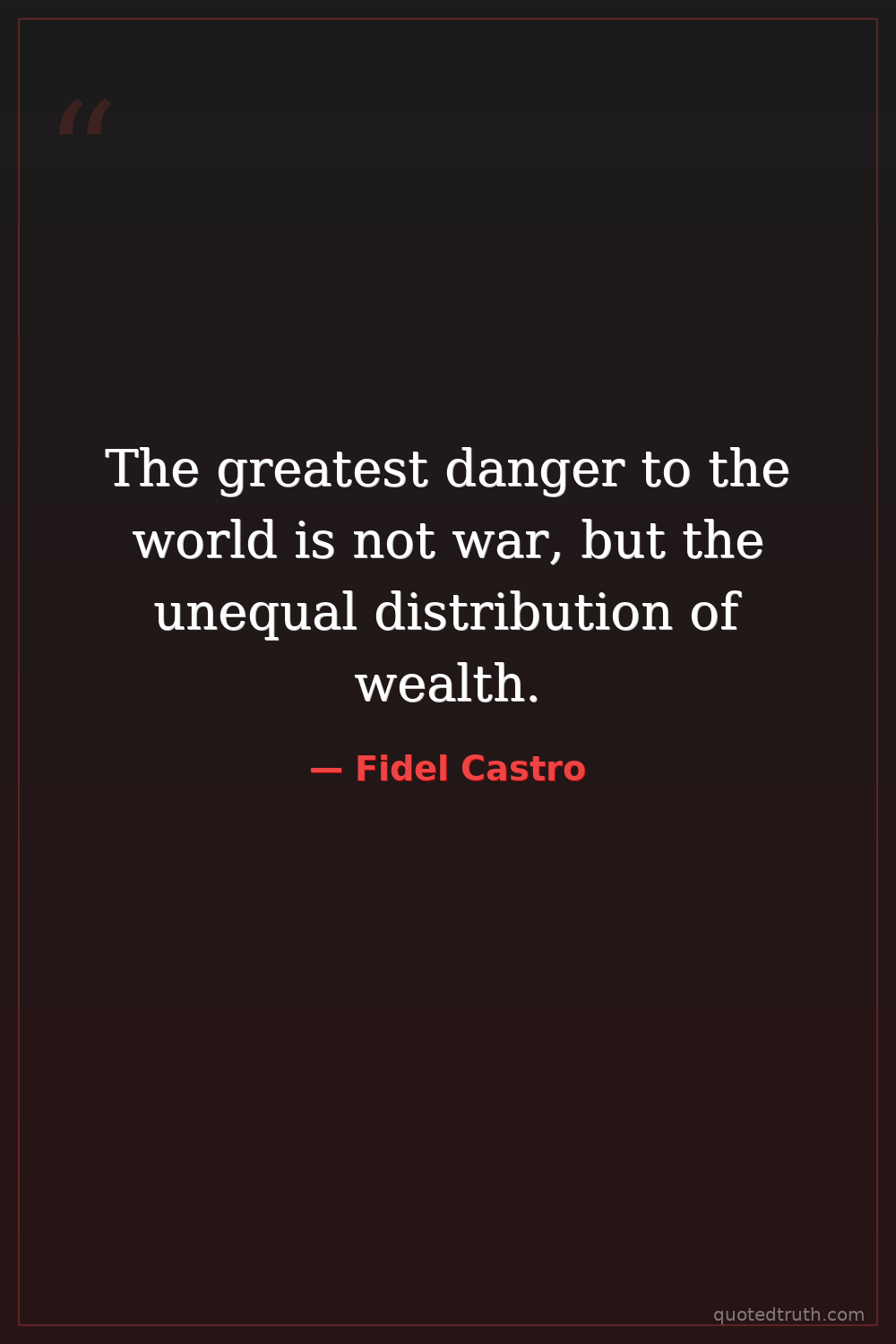 The greatest danger to the world is not war, but the unequal distribution of wealth.