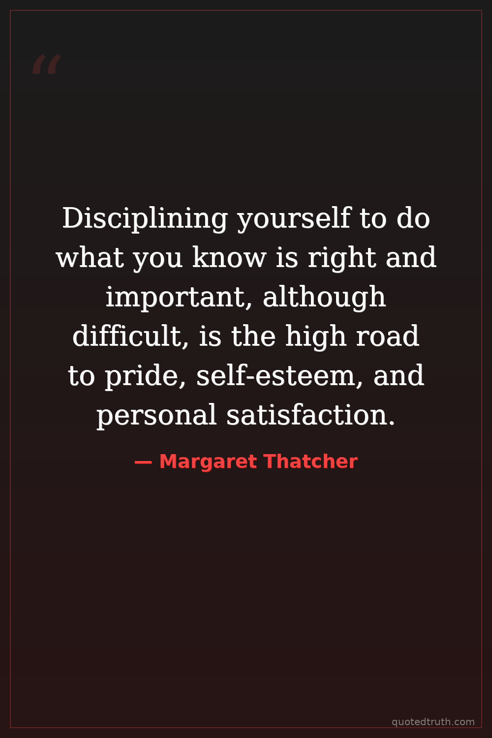 Disciplining yourself to do what you know is right and important, although difficult, is the high road to pride, self-esteem, and personal satisfaction.