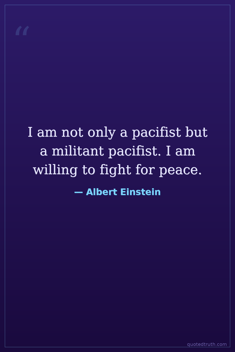 I am not only a pacifist but a militant pacifist. I am willing to fight for peace.