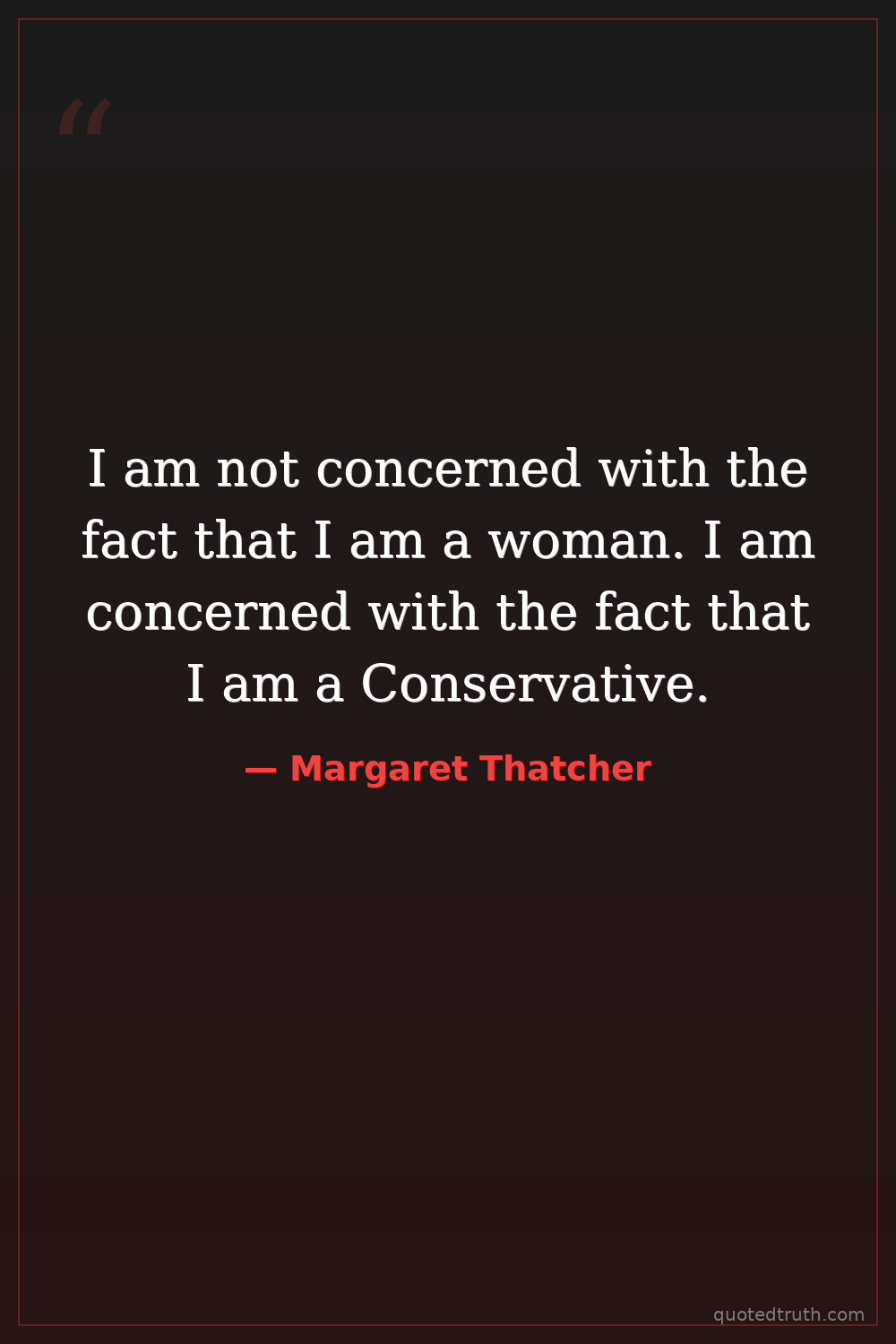 I am not concerned with the fact that I am a woman. I am concerned with the fact that I am a Conservative.