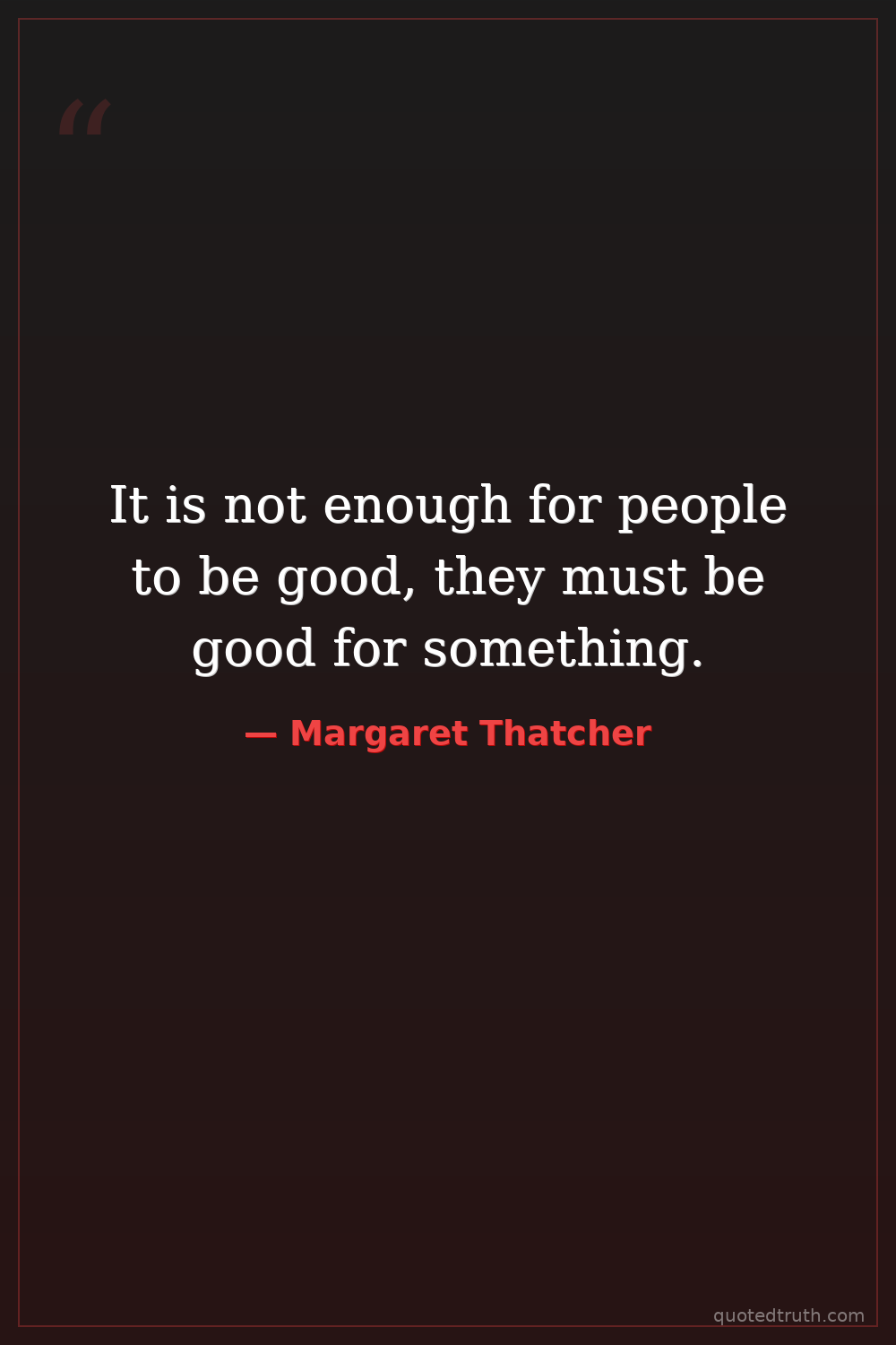 It is not enough for people to be good, they must be good for something.