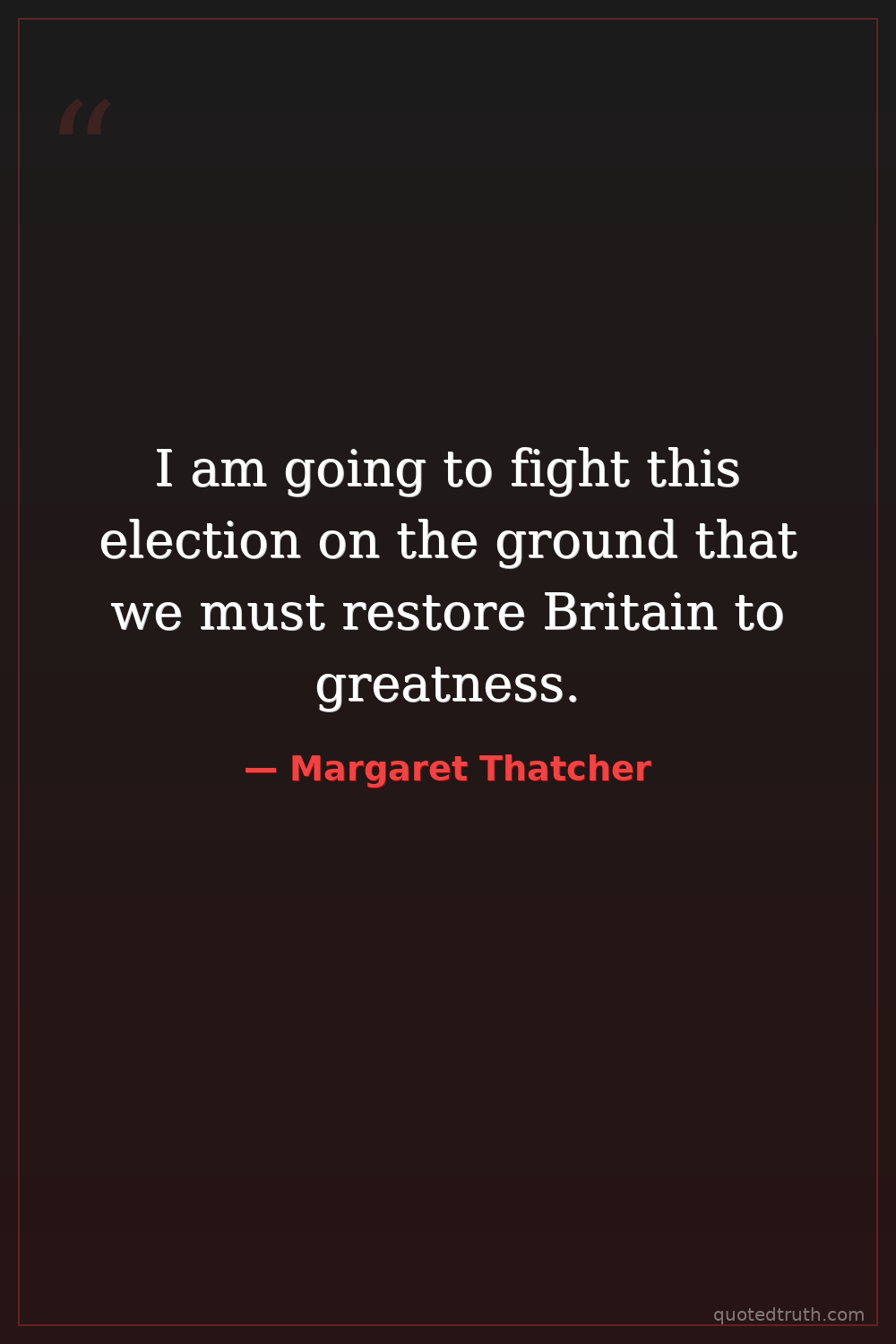 I am going to fight this election on the ground that we must restore Britain to greatness.