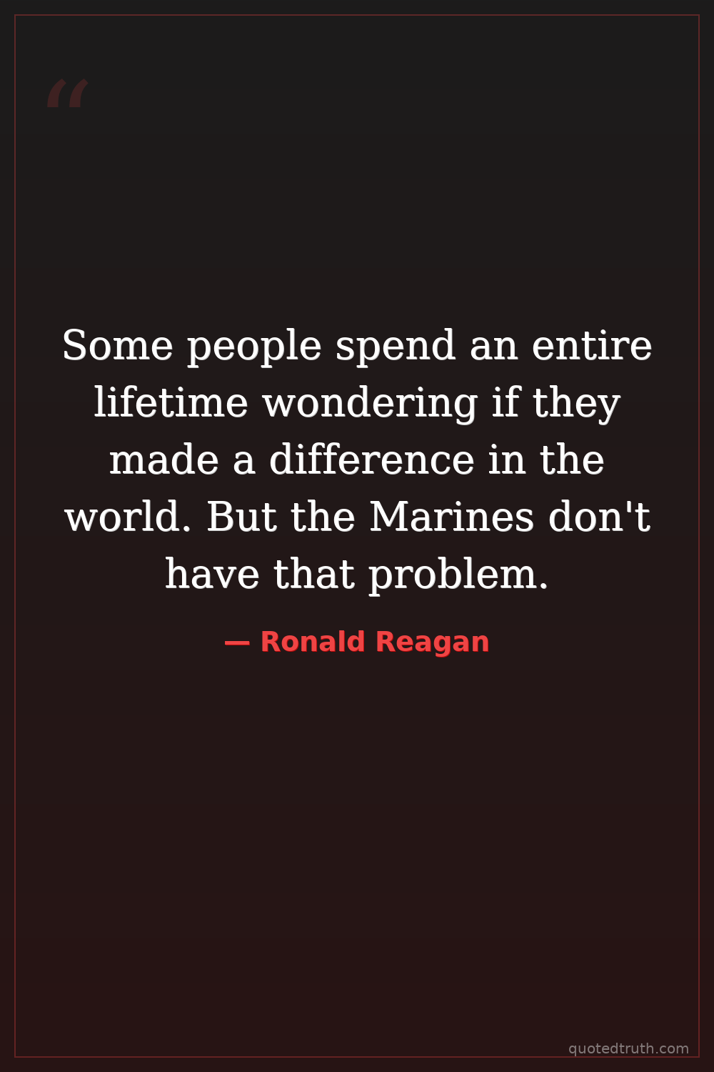 Some people spend an entire lifetime wondering if they made a difference in the world. But the Marines don't have that problem.