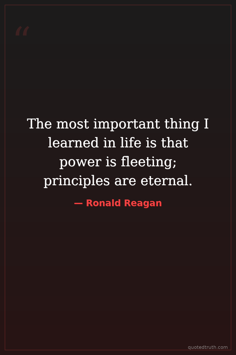 The most important thing I learned in life is that power is fleeting; principles are eternal.