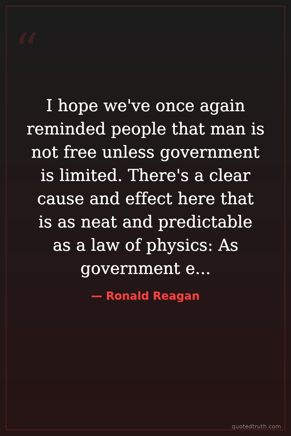 I hope we've once again reminded people that man is not free unless government is limited. There's a clear cause and effect here that is as neat and predictable as a law of physics: As government expands, liberty contracts.