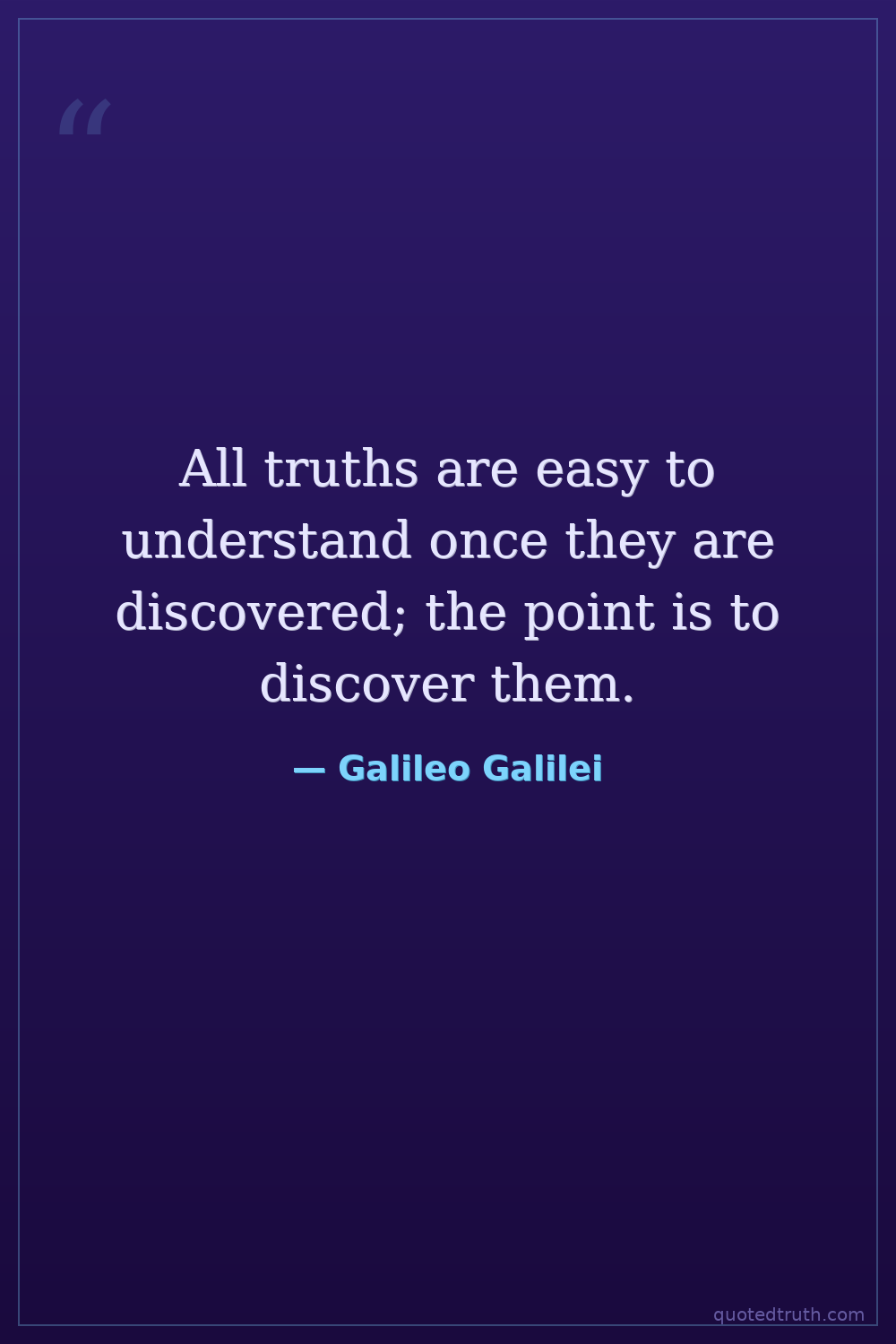 All truths are easy to understand once they are discovered; the point is to discover them.