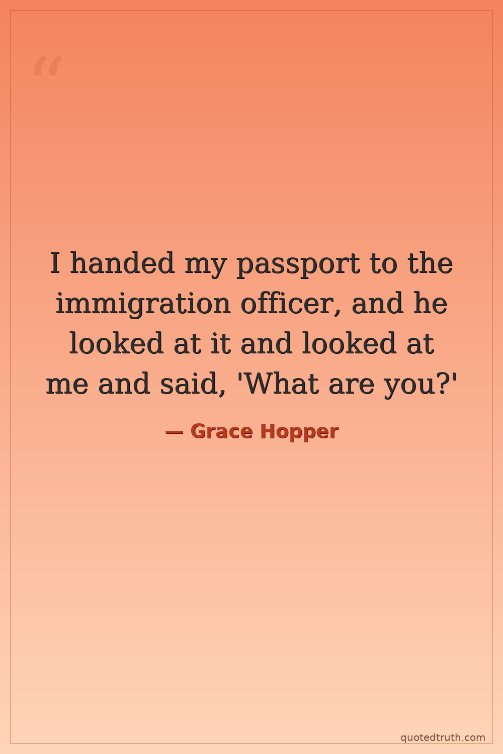 I handed my passport to the immigration officer, and he looked at it and looked at me and said, 'What are you?'
