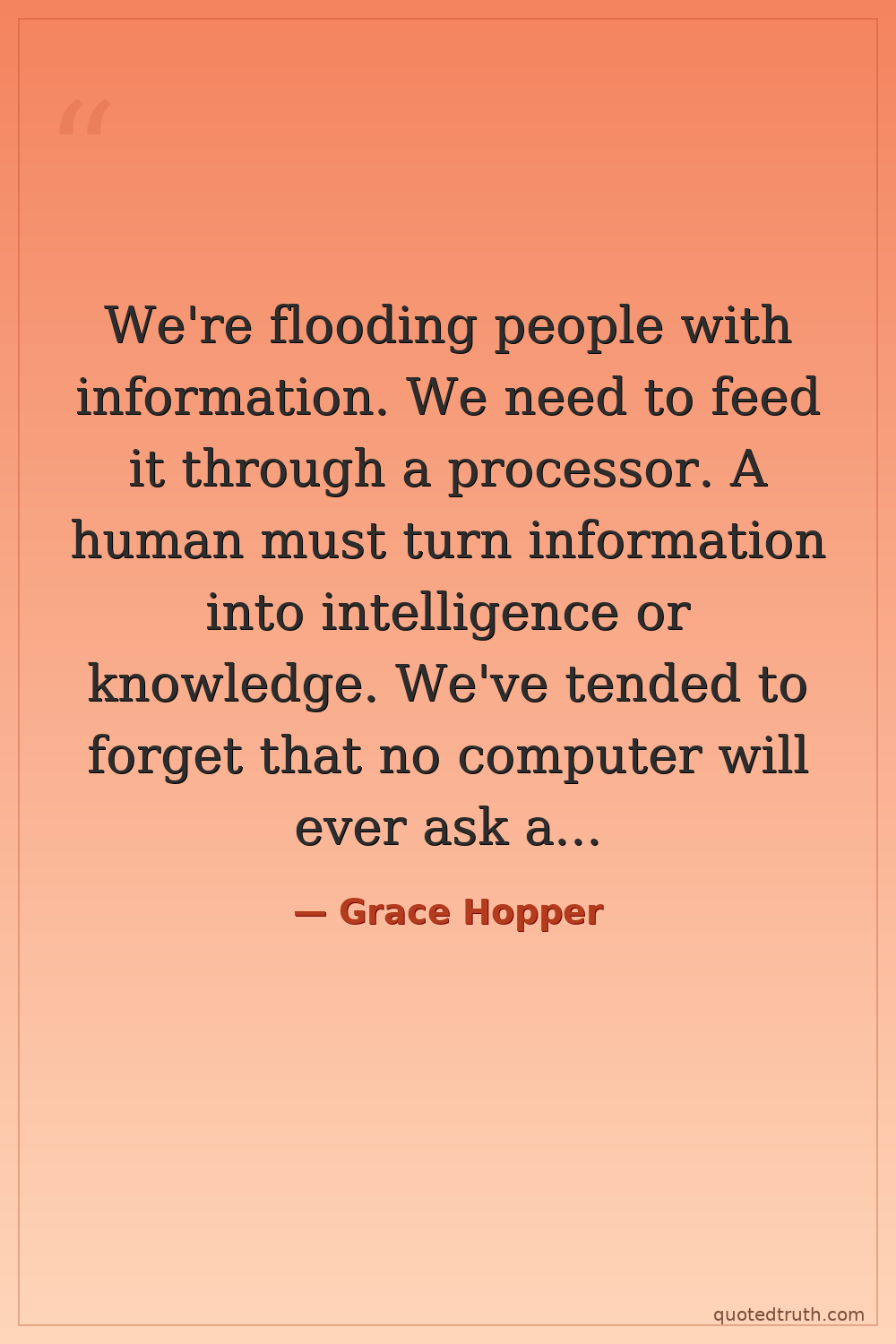 We're flooding people with information. We need to feed it through a processor. A human must turn information into intelligence or knowledge. We've tended to forget that no computer will ever ask a new question.