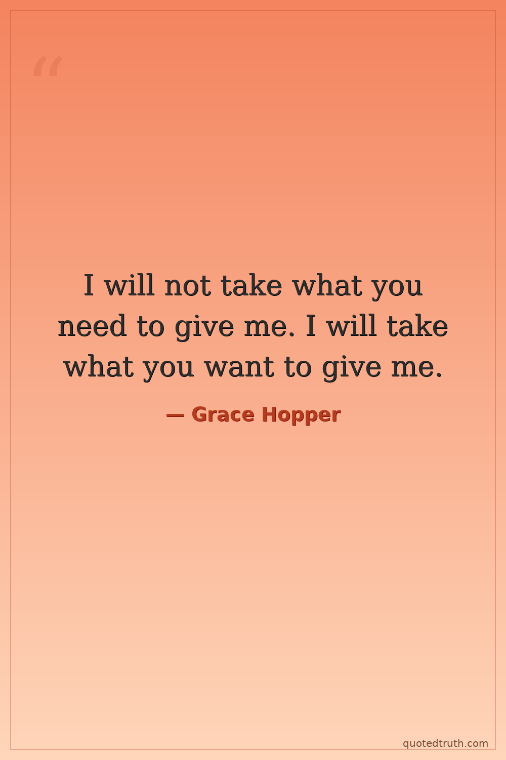 I will not take what you need to give me. I will take what you want to give me.